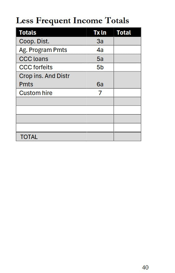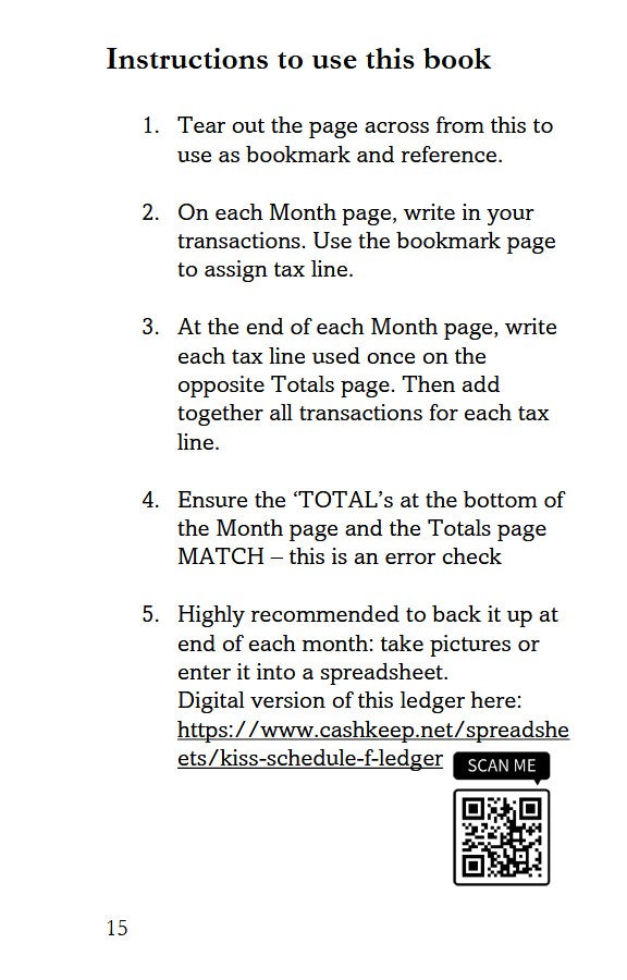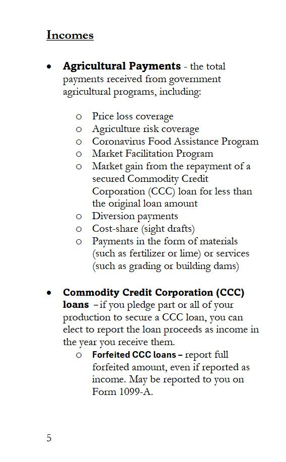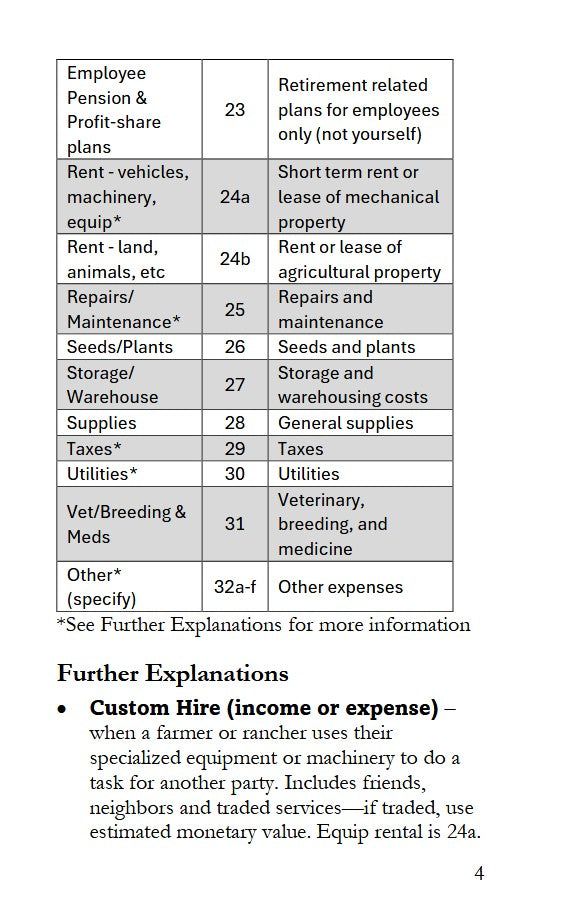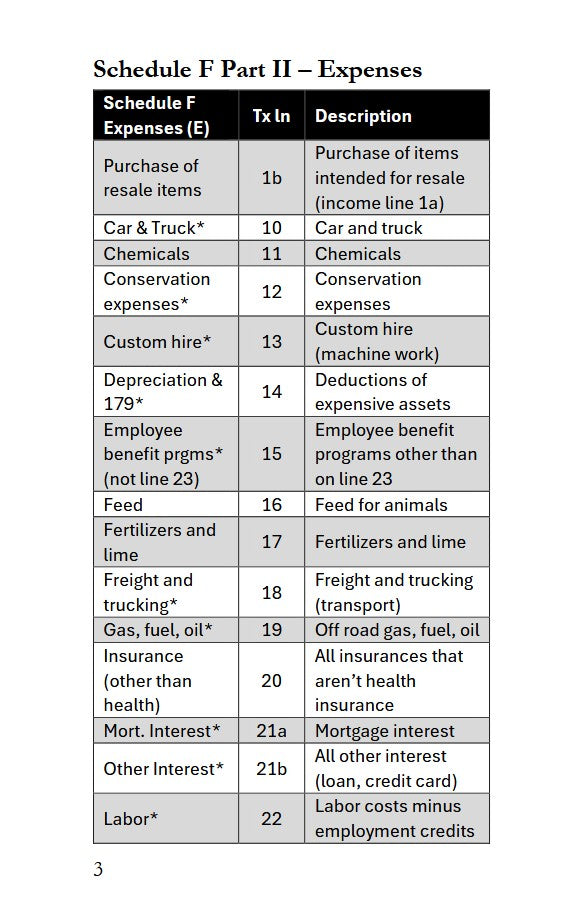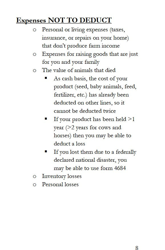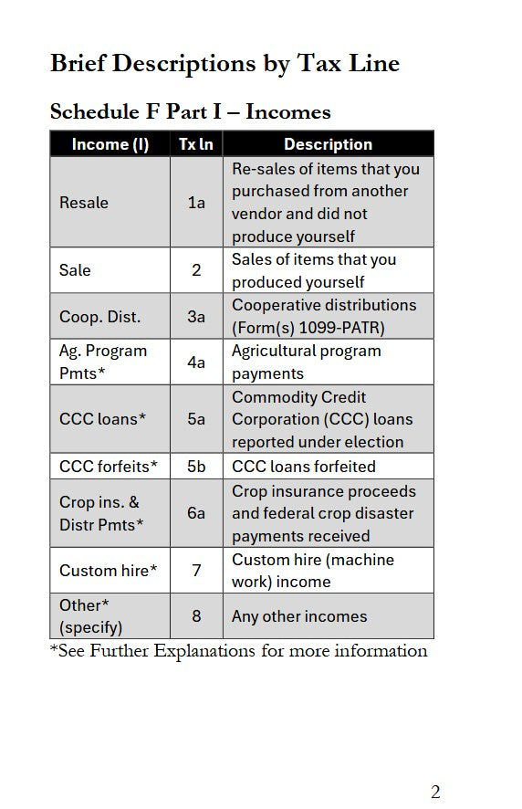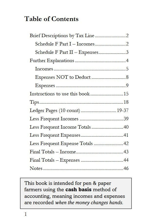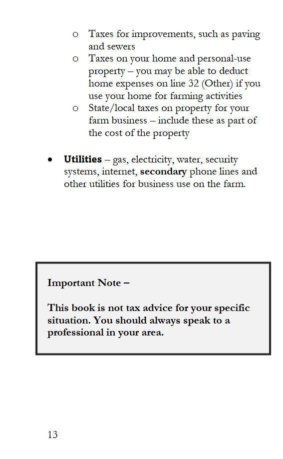 This book is meant to be a general guide for small farmers in the US using the cash basis method to file a Schedule F. This is not tax advice for your specific situation. Always consult a professional.