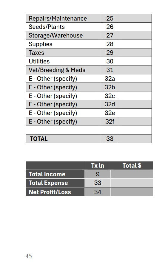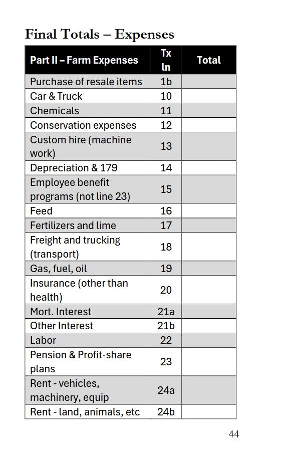 Use this pocket sized book to track income and expenses for your small farm and easily transfer the totals to a Schedule F.